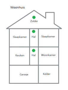 Bij een schuin dak moet er gekozen worden van een zodanige constructie dat de rookmelder horizontaal aan het plafond hangt. De nokhoogte is maximaal 6 meter.